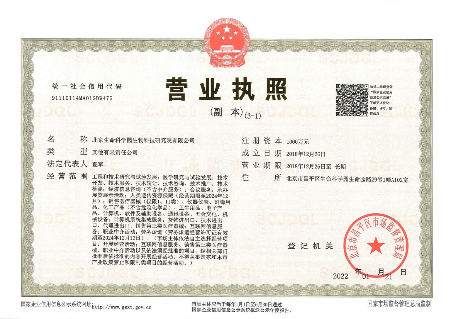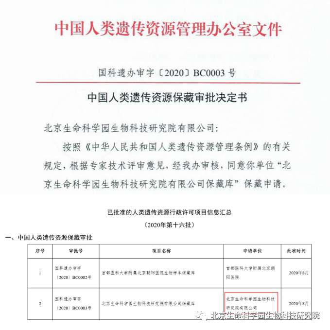 北京生命科學園生物科技研究院(以下簡稱“北京生物樣本資源庫”)(Biobank of Life Science Park,簡寫“BoLSP”)是一家由北京市科委和中關(guān)村生命科學園共同支持設(shè)立的第三方生物樣本庫公共服務平臺,秉承北京重大疾病臨床數(shù)據(jù)和樣本資源庫(以下簡稱“北京庫”)(Beijing Biobank of Clinical Resources,BBCR)十余年的發(fā)展成果,聚合眾多臨床樣本專家的專業(yè)共識,致力于在生命科學、生物醫(yī)藥研究領(lǐng)域發(fā)揮銜接樣本資源持有者與研究者的橋梁作用,解決生物樣本資源開發(fā)上下游信息不對稱、資源共享困難等問題。研究院在北京中關(guān)村生命科學園昌平園區(qū)建立了2000㎡生物樣本庫,最大存儲規(guī)模達1000萬份。研究院遵循CNAS-CL10:2020《生物樣本庫質(zhì)量和能力認可準則》,同時結(jié)合北京庫過去十年的工作經(jīng)驗與教訓,建立了一套完善的生物樣本保藏質(zhì)量管理體系,從人、機、料、法、環(huán)、控多個角度,實現(xiàn)生物樣本保藏過程的全面質(zhì)量控制,先后獲得國家科技部頒發(fā)的人類遺傳資源保藏行政許可證書和中國合格評定國家認可委員會(China National Accreditation Service for Conformity Assessment,CNAS)頒發(fā)的“CNAS認可證書”。